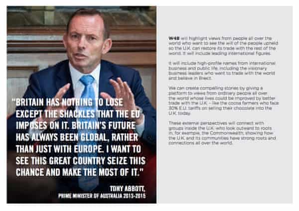 Tony Abbott Used To Promote Pro Brexit Group Despite Having No Affiliation Australia News The Guardian