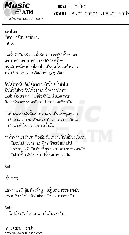 เน อเพลง เน อเพลง ปลาไหล ธ นวา อาร สยาม ธ นวา ราศ ธน เพลงอ นด Popasia เน อเพลง คอร ดเพลงใหม ๆ 1 ประเทศไทย